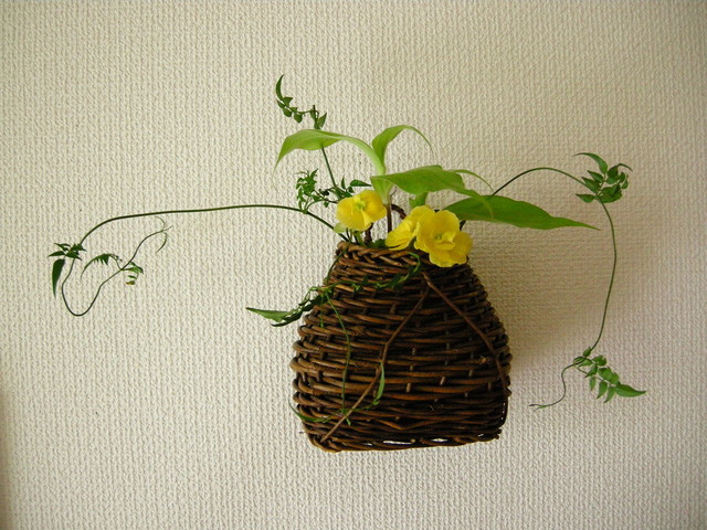 家中裝飾了許多簡單、典雅的花器,有的用掛的有的以垂釣的方式,