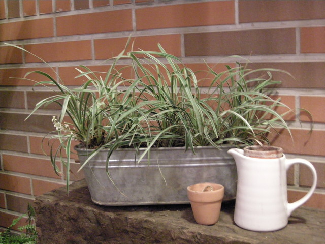 旁邊擺上白色的壺狀陶器、小小的素燒盆,