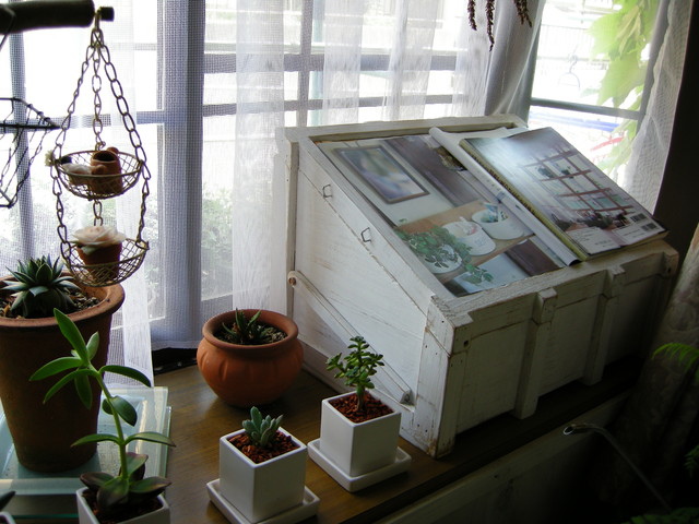佐藤家的窗邊也是讓筆者佇立許久的地方,利用透明的釣魚線釣著一隻樹幹,和下面窗台擺放的植栽互相輝映。透明的嫘絲沙窗,窗台擺放著是白色花器配上綠色的觀葉植物,好想也能擁有這樣的窗台。